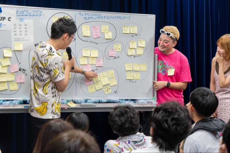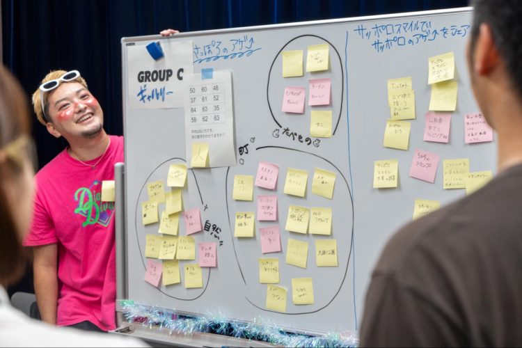 STEP4:「サッポロスマイル※3を使って札幌のアゲをシェアハピするには?」をテーマに、どうすれば札幌市の魅力が広まるかをブレストし、全体で発表しました。