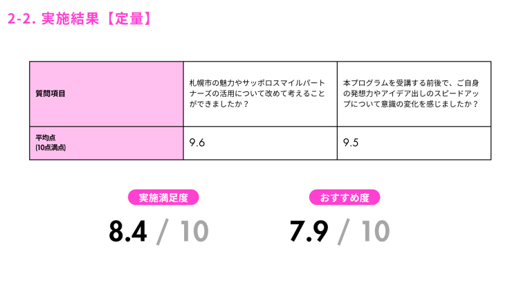 「札幌市の魅力やサッポロスマイルパートナーズの活用について改めて考えることができた」 →96%