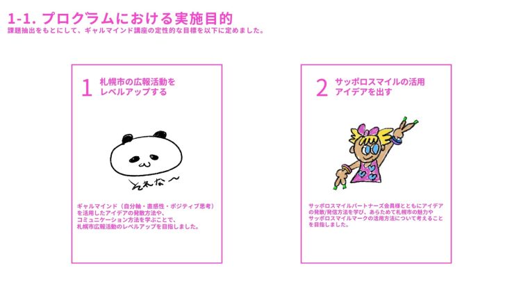 札幌市役所との4回目のお取り組みでは、札幌市の広報活動全体のレベルアップだけでなく、より具体的かつ柔軟なアイデアの種を創出するためのギャルマインドの浸透までを実感として伴うことができました。