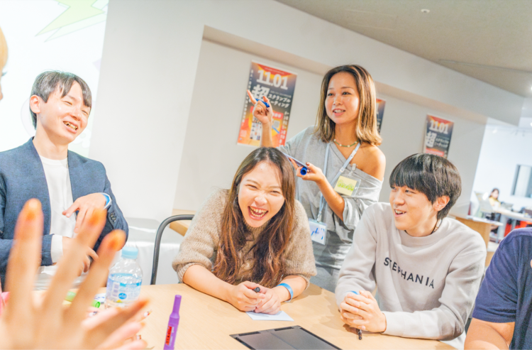 まずCGOドットコムから参加者に「ギャル式のコミュニケーション方法」を共有。次に、過去の人生 経験から「複数人で行動する動機」を洗い出していきました。「複数人で行動する動機」をもとに、 「複数人で行きたくなる未来のセブン」についてグループでアイデアブレストを実施。